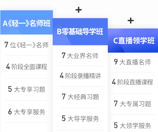 包含:A輕一名師班:7位《輕一》名師、4階段全面課程、5大專享習(xí)題、6大專享服務(wù);