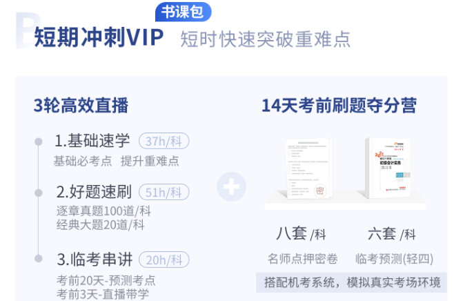 AI導(dǎo)師系統(tǒng)定計(jì)劃+A 輕一名師班奠定基礎(chǔ)+B 短期沖刺VIP班攻克難點(diǎn)。好書+好課,三步化解初級(jí)考生備考困難,助力輕松通關(guān)!更多課程詳情,戳我了解。