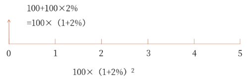 【例題】某人將100元存入銀行,年利率2%,求5年后的終值。