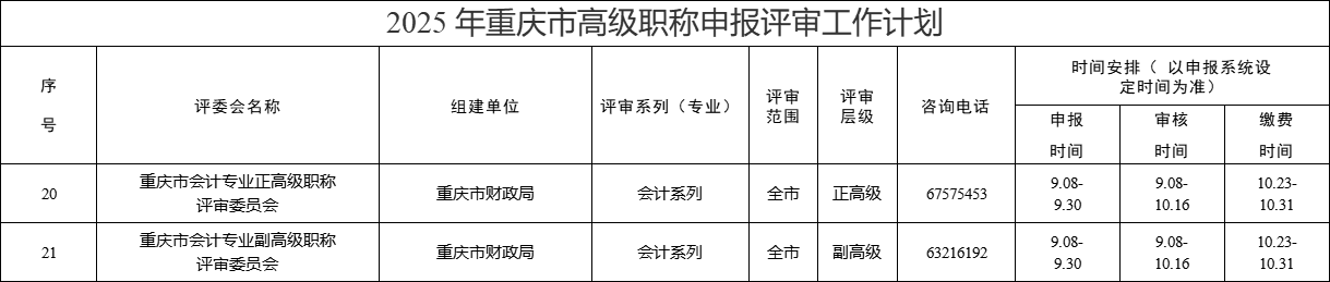 附件:1.2025年重慶市高級(jí)職稱申報(bào)評(píng)審工作計(jì)劃