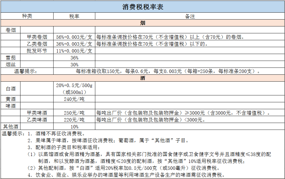 想要計(jì)算消費(fèi)稅,首先要知道消費(fèi)稅的稅率,消費(fèi)稅不同于其他的稅種,其不同種類的產(chǎn)品稅率也有所不同。下面是小編為大家編制的消費(fèi)稅稅率表。