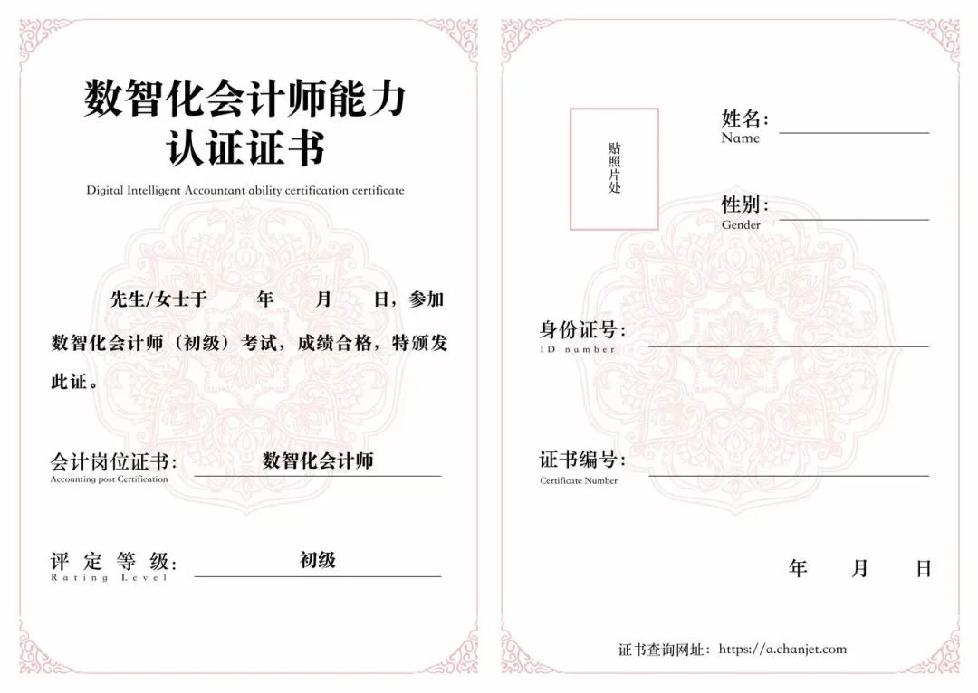 用友旗下暢捷通蓋章認證(聯(lián)網(wǎng)可查)的《數(shù)字化會計師能力認證證書》(初級)電子版