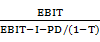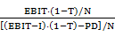假設(shè)利息I、稅率T、優(yōu)先股股息PD、普通股股數(shù)N不變,則: