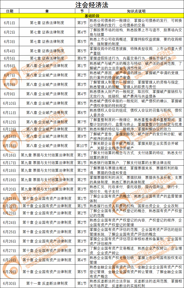 【2020年注冊(cè)會(huì)計(jì)師《經(jīng)濟(jì)法》6月份學(xué)習(xí)日歷】