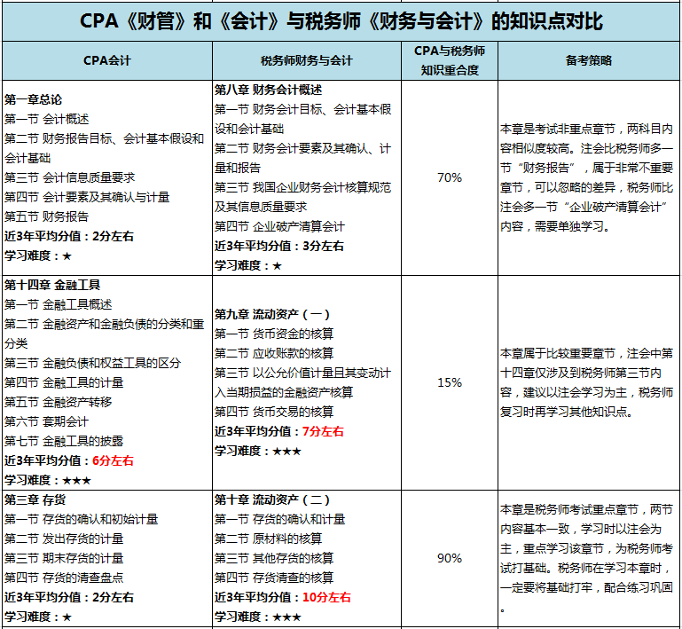 為了使同學(xué)們更加了解注冊(cè)會(huì)計(jì)師考試與稅務(wù)師的相似內(nèi)容,同時(shí)能幫助“一備兩考”的同學(xué)們更有針對(duì)性地進(jìn)行學(xué)習(xí),小編特地整理了CPA《會(huì)計(jì)》和《財(cái)管》與稅務(wù)師《財(cái)務(wù)與會(huì)計(jì)》的知識(shí)點(diǎn)對(duì)比,并提供了備考建議,同學(xué)們快來了解一下吧!