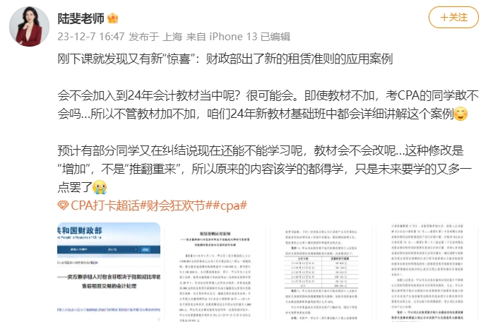 對于財政部發(fā)布的最新租賃準則應用案例,陸斐老師給出了如下備考建議。