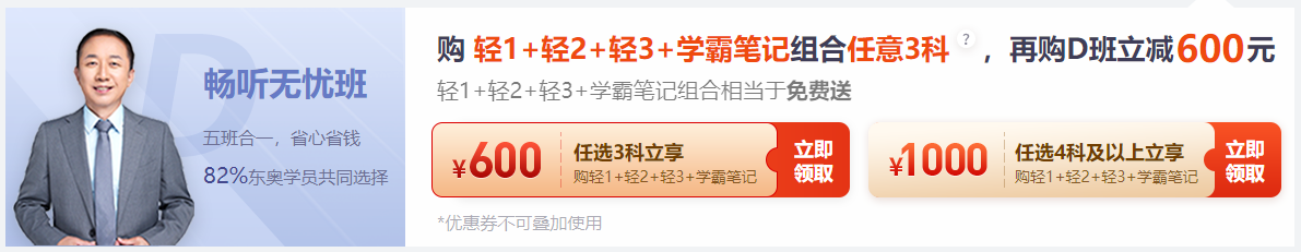 凡購輕1+輕2+輕3+學霸筆記組合任意3科,再購D班立減600元