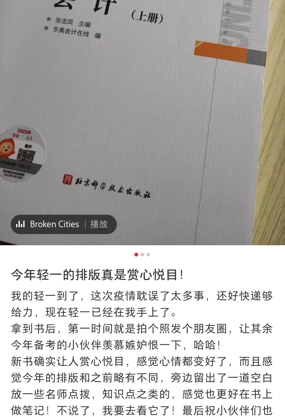 注冊(cè)會(huì)計(jì)師考試正處于基礎(chǔ)階段備考當(dāng)中,對(duì)于考生來說,注會(huì)《輕一》是助力備考的一大利器,注會(huì)《輕一》也一直備受考生歡迎!2022年注會(huì)《輕一》迎來創(chuàng)新升級(jí),致力于提高考生們的使用體驗(yàn)!2022年注會(huì)《輕一》與3月中旬上市,自輕一上市以來,已有無數(shù)的考生收到了新版輕一實(shí)體書或是電子版。那么拿到新版輕一的考生對(duì)本書有哪些評(píng)價(jià)?各位朋友們請(qǐng)隨小編一起來看看吧!