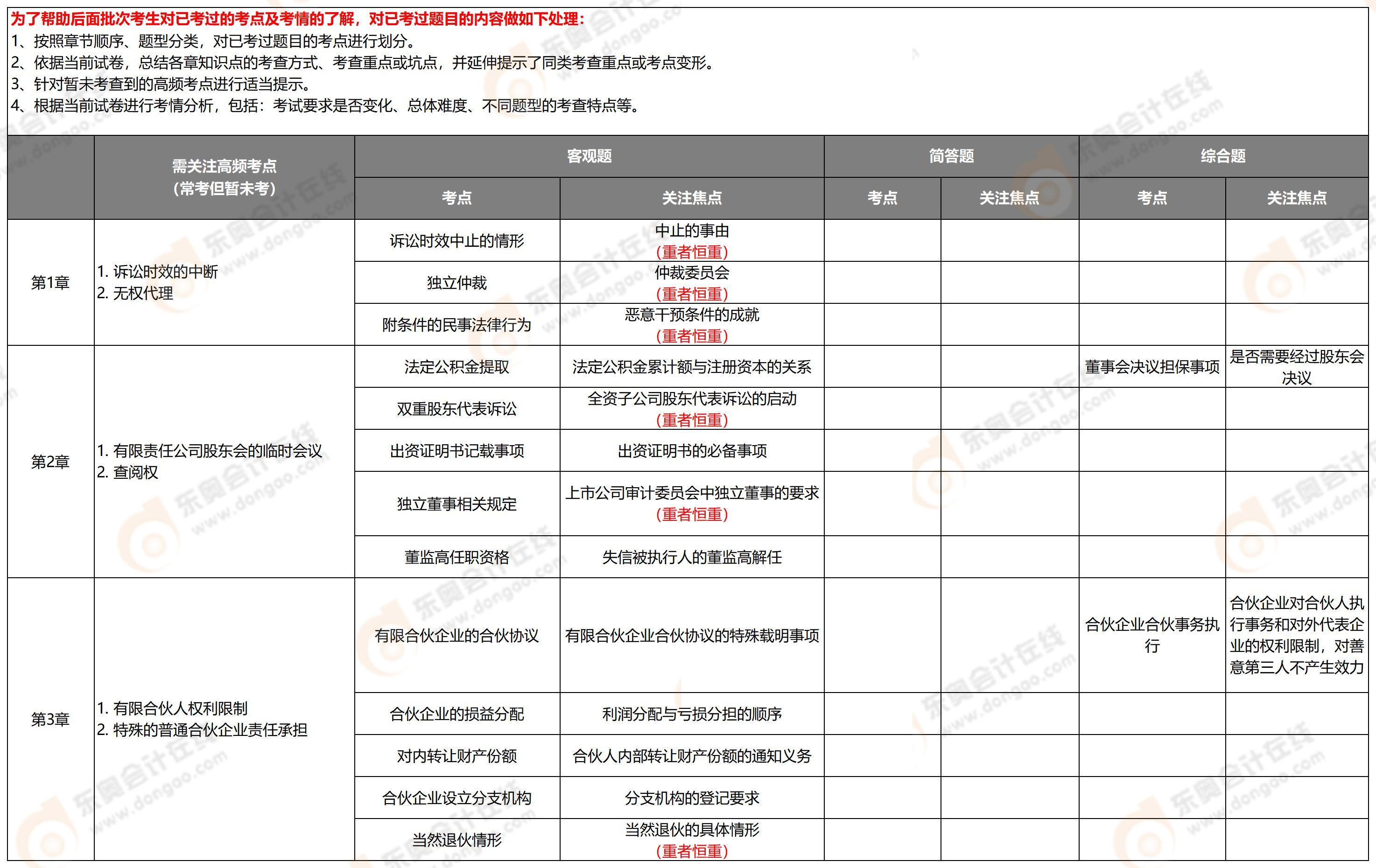 總體來看,本場中級經(jīng)濟(jì)法考試難度與去年基本持平,未出現(xiàn)超綱或偏怪考點,核心聚焦基礎(chǔ)、常規(guī)知識點的考查??疾橹攸c仍集中在七大核心章節(jié)。相較于去年,客觀題中第三章、第七章的的考查分值略有上升;主觀題中,第六章關(guān)于票據(jù)的相關(guān)考點占比有所提升。綜合題更是深度融合第一章、第二章、第三章、第四章、第五章,這五大章節(jié)內(nèi)容,章節(jié)融合度顯著提高。整體考點常規(guī),如訴訟時效中止、法定公積金提取、留置權(quán)優(yōu)先受償、票據(jù)保證效力、合伙事務(wù)執(zhí)行限制等均為高頻核心知識點。